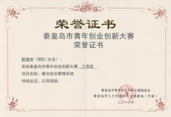 2016年5月,公司組建了“銳磁”和“新媒體”兩個團隊,參加秦皇島市青年創(chuàng)業(yè)創(chuàng)新大賽,其中“銳磁”團隊的參賽項目為《全工況高精度汽包水位高溫高壓磁致精準測量裝置》,“新媒體”團隊的參賽項目為《煤倉綜合管理系統(tǒng)》,經(jīng)過兩個團隊的不斷開拓創(chuàng)新,兩個項目先后在市級、省級及國家級的比賽中連獲殊榮?!度r高精度汽包水位高溫高壓磁致精準測量裝置》獲得秦皇島市青年創(chuàng)業(yè)創(chuàng)新大賽三等獎,第二屆“中國創(chuàng)翼”青年創(chuàng)業(yè)創(chuàng)新大賽高端設(shè)備制造類項“金翼獎”;《煤倉綜合管理系統(tǒng)》獲得秦皇島市青年創(chuàng)業(yè)創(chuàng)新大賽三等獎,河北省青年創(chuàng)業(yè)創(chuàng)新大賽三等獎,第二屆“中國創(chuàng)翼”青年創(chuàng)業(yè)創(chuàng)新大賽高端設(shè)備制造類項“銀翼獎”。