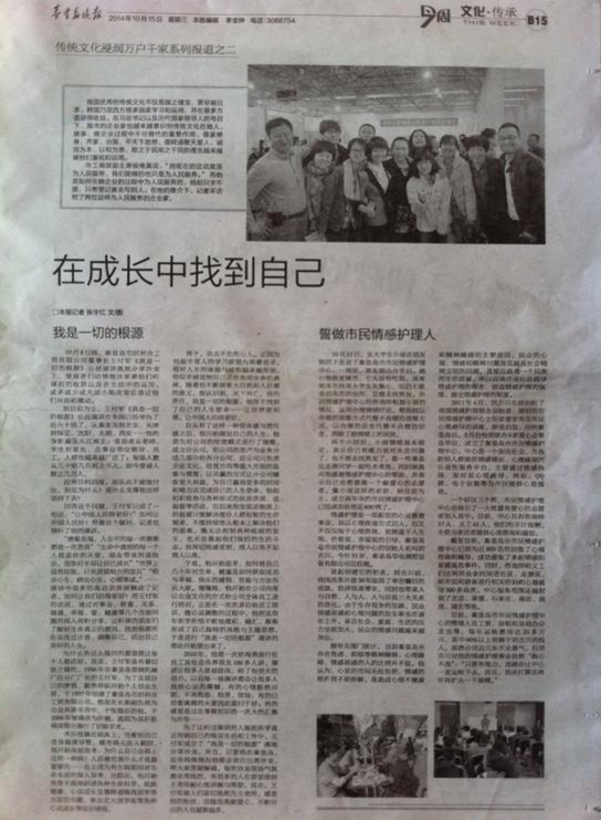 談起創(chuàng)建它的初衷,劉吉川說(shuō),我國(guó)改革開(kāi)放30年取得了舉世矚目的成就,經(jīng)濟(jì)快速增長(zhǎng),同時(shí)也帶來(lái)人與自然、人與人、人與自我三大關(guān)系的惡化。由于生存競(jìng)爭(zhēng)的加劇,民眾情感困惑和心理問(wèn)題越來(lái)越突出。