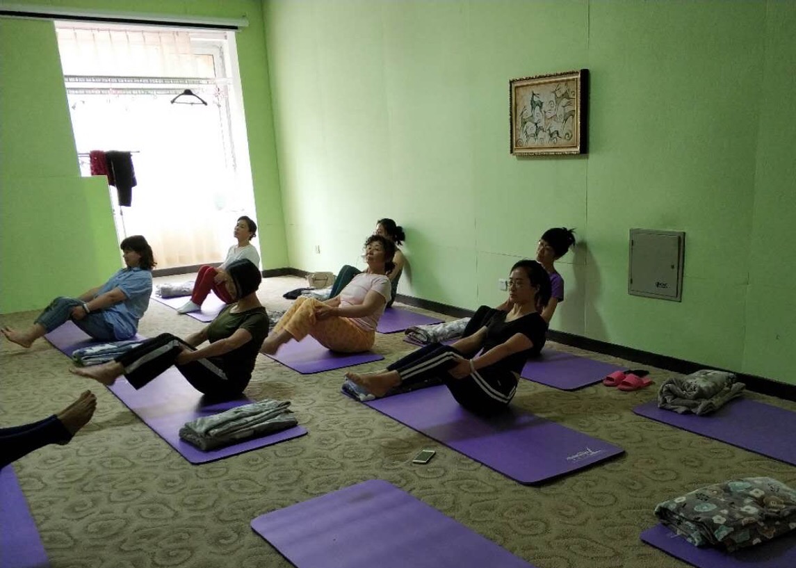在優(yōu)美柔和的音樂中,老師一邊帶領(lǐng)大家學(xué)習(xí)動作,一邊講解學(xué)習(xí)要領(lǐng)。在動與靜的結(jié)合中,通過放松全身來提高身體的協(xié)調(diào)性。老師帶領(lǐng)學(xué)員們做腹式呼吸,拉伸動作,平靜心情,還對學(xué)員逐個進行矯正。
