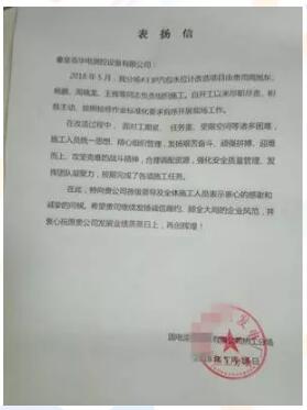 追求卓越,精益求精是每一個(gè)華電測(cè)控員工的行為準(zhǔn)則。此次改造過程中,我方施工人員獲得了電廠的來信表揚(yáng)。