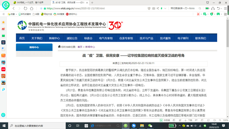 【企業(yè)要聞】戰(zhàn)“疫”面前,人人有責(zé) -記中國機(jī)電一體化技術(shù)應(yīng)用協(xié)會工程技術(shù)發(fā)展中心刊登我司報道有感