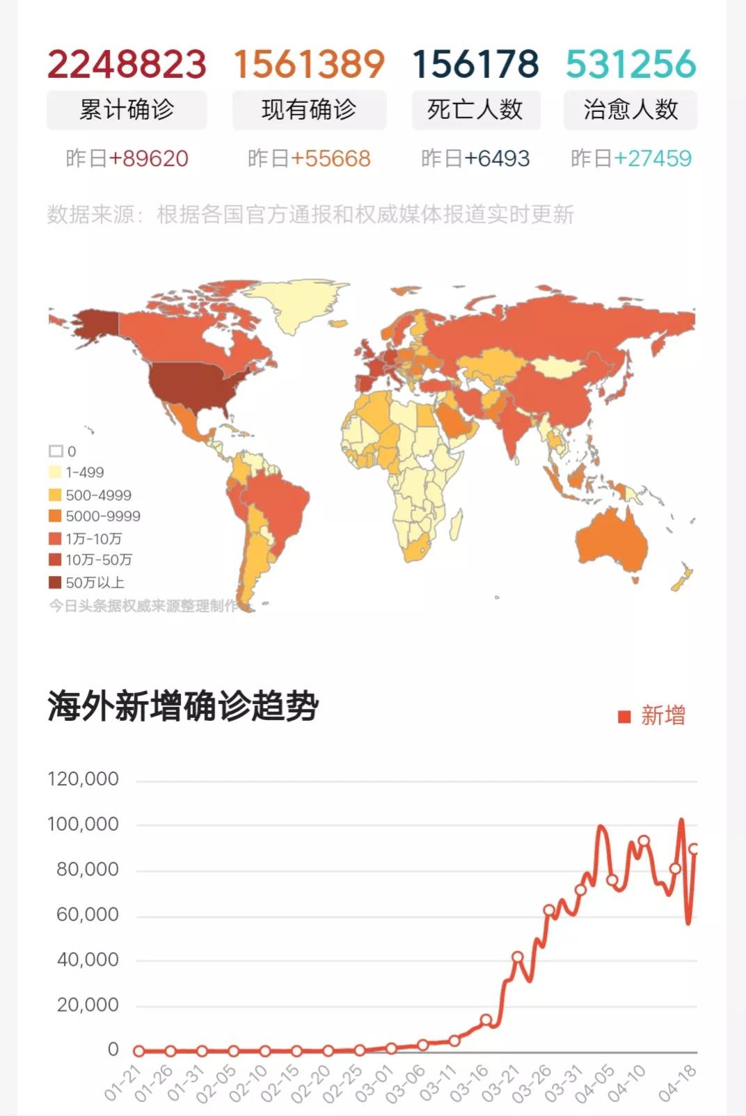 講故事之前,先說時代背景,再說追根溯源。新冠肺炎疫情已經(jīng)蔓延至全世界,對人類的傷害,給世界各國造成的損失已經(jīng)難以估量。據(jù)中新社北京4月16日綜合消息:世界衛(wèi)生組織15日公布數(shù)據(jù)顯示,截至北京時間當天16時,全球累計新冠肺炎確診病例達1914916例。另據(jù)美國約翰斯?霍普金斯大學實時統(tǒng)計數(shù)據(jù),截至北京時間16日上午,全球累計確診病例數(shù)超206萬,逾13萬人死亡。