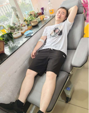 經(jīng)過(guò)兩個(gè)多小時(shí)的漫長(zhǎng)等待,下午五點(diǎn)多,血小板捐獻(xiàn)結(jié)束,程磊汗流浹背的走出獻(xiàn)血房間,圓滿的完成了本次任務(wù)。