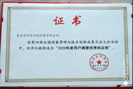 2020年8月22日,秦皇島華電測控設(shè)備有限公司應(yīng)中國設(shè)備管理協(xié)會邀請,參加2020年第四屆全國設(shè)備管理與技術(shù)創(chuàng)新成果交流大會。并被推薦為“2020年度用戶滿意優(yōu)秀供應(yīng)商”。