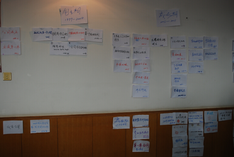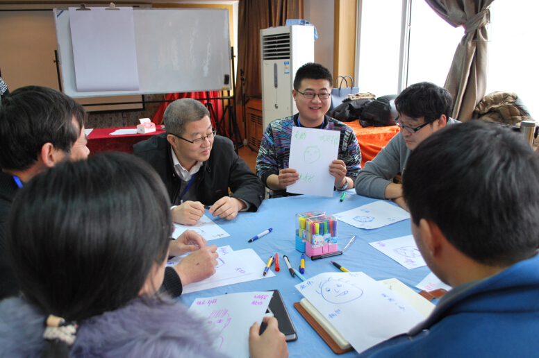 培訓(xùn)采用“世界咖啡”模式,每六人一組圍坐圓桌,每個(gè)人從一幅自畫像開始,表達(dá)出自己的心情和期待,接著,徐英教練引導(dǎo)大家回憶公司發(fā)展歷程,公司成立十六年來選取其中最重要的十件大事,以及在座每一位進(jìn)公司以來最重大的事,回顧往昔,從艱苦的創(chuàng)業(yè)期,到成長期,集團(tuán)化期,超越期,大家感慨萬千,往日的一幕幕情景涌上心頭,我們克服了一個(gè)又一個(gè)困難,取得了一個(gè)又一個(gè)成果,很多夢想變成了現(xiàn)實(shí),心中滿是喜悅,滿是感恩,回味無窮。大家拿起手中的畫筆,描畫出未來的華電測控宏偉藍(lán)圖。一幅幅色彩豐富、無限美好的圖畫掛到了墻上,大家的眼睛閃閃發(fā)亮,講述心中的美好遠(yuǎn)景,充滿了信心和希望。接下來,大家分組討論公司2015年急需解決的問題,最終選中三個(gè)題目“如何提高銷售額”,“如何提高員工積極性”以及“健康生活,快樂工作”,各團(tuán)隊(duì)士氣高漲,帶隊(duì)負(fù)責(zé)人上臺積極的宣講展示,精彩的講解博得大家陣陣歡笑和掌聲。