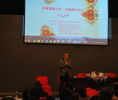 本次講座由河北省政協(xié)委員、秦皇島市工商聯(lián)副會(huì)長(zhǎng)、秦皇島金維達(dá)機(jī)械有限公司董事長(zhǎng)、“善人道”團(tuán)隊(duì)隊(duì)員――侯維真老師及其團(tuán)隊(duì)全程策劃,侯老師及其團(tuán)隊(duì)成員,為大家感情真摯、言辭懇切地分享了自己學(xué)習(xí)傳統(tǒng)文化的真知灼見,與會(huì)人員無不受益,會(huì)場(chǎng)掌聲此起彼伏、高潮迭起;動(dòng)情之處,會(huì)場(chǎng)許多人一起抽泣、哽咽,受益匪淺?;顒?dòng)中,大家還一起誦讀了中華傳統(tǒng)典籍《弟子規(guī)》,欣賞了習(xí)近平總書記作詞的歌曲《志成學(xué)子之歌》(習(xí)近平主席寄語),滿滿的正能量在會(huì)議大廳流淌。午休時(shí)間,孝文化協(xié)會(huì)還為大家獻(xiàn)上了文藝表演,以優(yōu)美的舞蹈、動(dòng)人的歌聲、激情的朗誦、幽默的三句半等等文藝方式演繹著中國傳統(tǒng)文化,內(nèi)容精彩、形式多樣,倍受觀眾喜愛,贏得了一次又一次熱烈的掌聲!