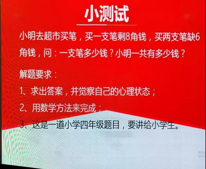 接下來是實戰(zhàn)環(huán)節(jié),劉老師通過一道小學(xué)四年級數(shù)學(xué)題,讓大家思考解題思路,如何讓孩子學(xué)會解題?