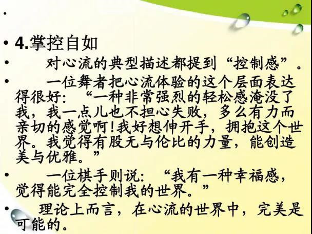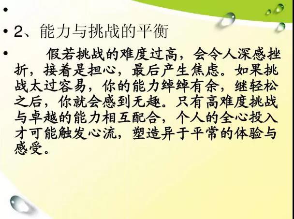 當(dāng)你全身心地投入某件事,達到忘我的程度,并由此獲得內(nèi)心的秩序與安寧時,一種極大的滿足感悄悄地潛入了你的心,使你快樂。這就是我們今天要來學(xué)習(xí)和探討的“心流”體驗。