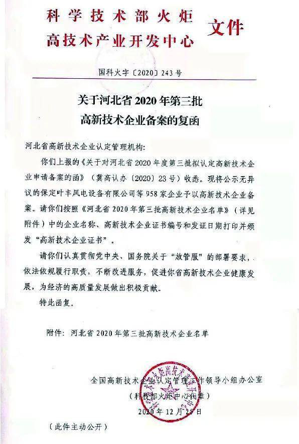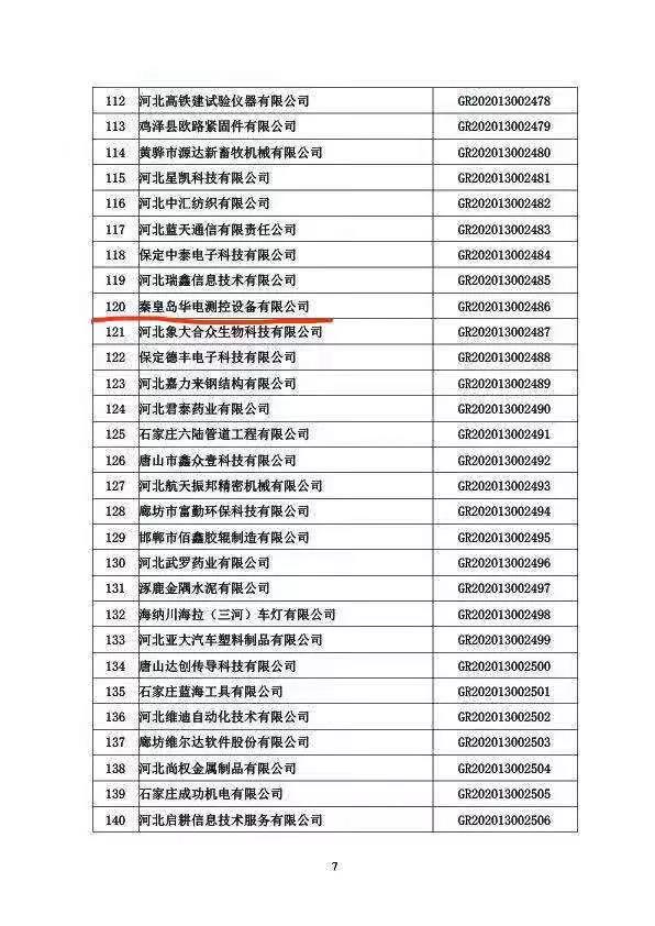 近日,秦皇島華電測控設(shè)備有限公司收到了全國高新技術(shù)企業(yè)認(rèn)定管理工作領(lǐng)導(dǎo)小組辦公室下發(fā)的《關(guān)于河北省2020年第三批高新技術(shù)企業(yè)備案的復(fù)函》(國科火字〔2020〕243號〕文件,公司第六次順利通過高新技術(shù)企業(yè)認(rèn)定。