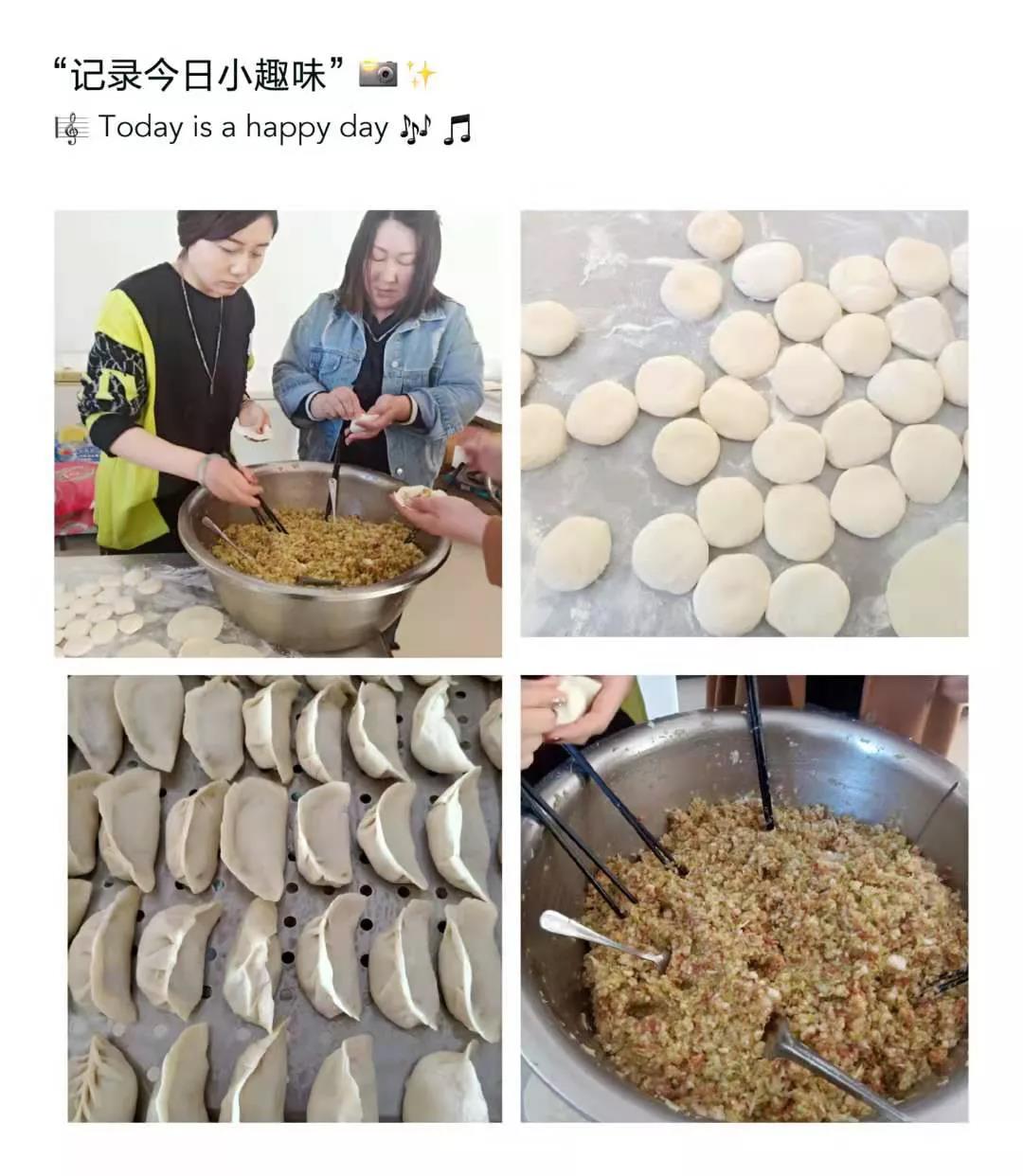 一大早食堂工作人員就把餃子餡、面團(tuán)等材料準(zhǔn)備好,等待大家的到來(lái)。8點(diǎn)40整大家準(zhǔn)時(shí)到達(dá)食堂,開(kāi)始了包餃子活動(dòng)。大家分工協(xié)作,默契配合,各展所長(zhǎng),現(xiàn)場(chǎng)熱鬧非凡。我來(lái)揉面...我皮趕得好,我來(lái)給大家包個(gè)花樣餃子...大家邊包餃子邊交流,包出的餃子風(fēng)格各不相同,有柳葉餃,有元寶餃,有荷葉膠...花樣繁多,大家邊包餃子邊交流,互相學(xué)習(xí)包餃子的技巧,整個(gè)食堂里充滿了歡聲笑語(yǔ)。