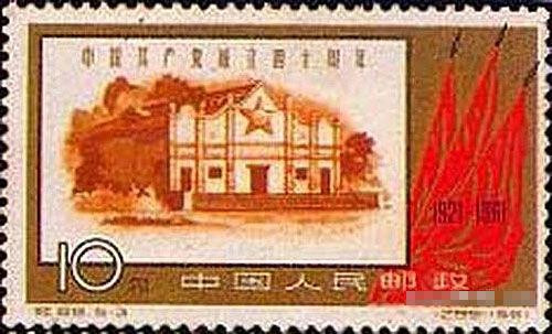 為紀(jì)念建黨40周年,1961年7月1日,郵政部門(mén)發(fā)行了紀(jì)念郵票 紀(jì)88 ,設(shè)計(jì)者為孫傳哲。全套共5枚,其中第3枚面值10分,為 中央大禮堂(瑞金),發(fā)行 400萬(wàn)枚 。