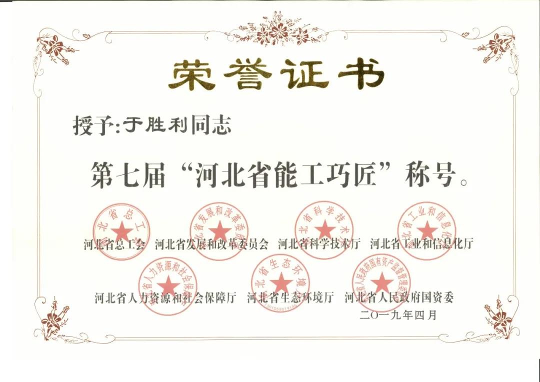 從剛參加工作的技術(shù)新人到擁有豐富經(jīng)驗(yàn)的“總工”,于勝利一路走來(lái),經(jīng)歷很多。作為一名共產(chǎn)黨員,他時(shí)刻不忘初心,時(shí)刻發(fā)揮黨員的先鋒帶頭作用,帶領(lǐng)班組成員提高創(chuàng)新研發(fā)技能,在崗期間,他主持研發(fā)的產(chǎn)品近五年已獲得兩項(xiàng)發(fā)明專利、兩項(xiàng)實(shí)用新型專利、一項(xiàng)美國(guó)發(fā)明專利,2016年榮獲第二屆“中國(guó)創(chuàng)翼”青年創(chuàng)業(yè)創(chuàng)新大賽銀翼獎(jiǎng),2017年被評(píng)為第五屆秦皇島市金牌工人,2018年榮獲河北省職工技術(shù)創(chuàng)新成果展演銀獎(jiǎng),2019年榮獲河北省第七屆能工巧匠稱號(hào),2020年榮獲秦皇島市勞動(dòng)模范等多項(xiàng)榮譽(yù),對(duì)于未來(lái)于勝利有著更深的思考和奮斗的目標(biāo)。