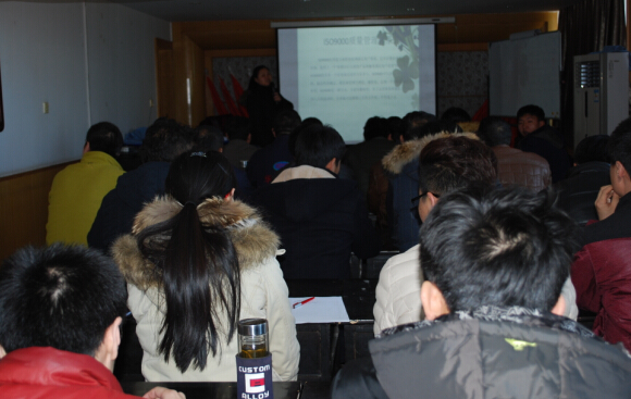 為了使全體員工熟練掌握工作程序并不斷完善、優(yōu)化ISO9001:2008質(zhì)量管理體系流程,進(jìn)一步把質(zhì)量管理體系建設(shè)工作向縱深推進(jìn),提高質(zhì)量管理能力,讓公司每名員工都學(xué)習(xí)、理解ISO9000質(zhì)量管理體系流程和標(biāo)準(zhǔn),使基礎(chǔ)管理工作更加標(biāo)準(zhǔn)化、規(guī)范化。3月11日,在公司管理部的組織下于會(huì)議室進(jìn)行了ISO9000質(zhì)量管理體系――工程部工作流程的培訓(xùn),由工程部?jī)?nèi)審員劉曉娜進(jìn)行授課。工程部全體人員,生產(chǎn)部、國(guó)貿(mào)部、管理部、市場(chǎng)部和客服部等部門人員等共34人參加了本次培訓(xùn)。