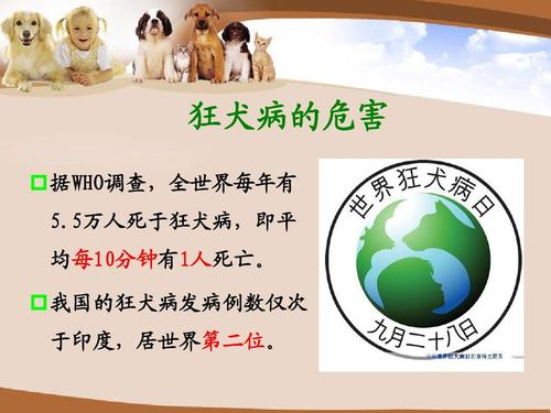 據(jù)世界衛(wèi)生組織在報告披露,狂犬病遍布于全世界,每年全球有55000人死于狂犬病,即每10分鐘就有1人死亡。此外,亞洲和非洲有1000萬人在被可能患有狂犬病的狗咬傷后,接受狂犬病疫苗注射。為了喚起全球的重視,在國際狂犬病控制聯(lián)盟的倡議下,世界衛(wèi)生組織、世界動物衛(wèi)生組織及美國疾病預(yù)防控制中心等共同發(fā)起并確定,每年的9月28日為世界狂犬病日。通過設(shè)立世界狂犬病日,將集合眾多的合作者和志愿者,群策群力,盡快使狂犬病成為歷史。第一個“世界狂犬病日”活動之后,各國紛紛開展相應(yīng)宣傳活動,相關(guān)的各項活動獲得里程碑式的成功,將全球的狂犬病預(yù)防和控制工作向前推進了一大步。