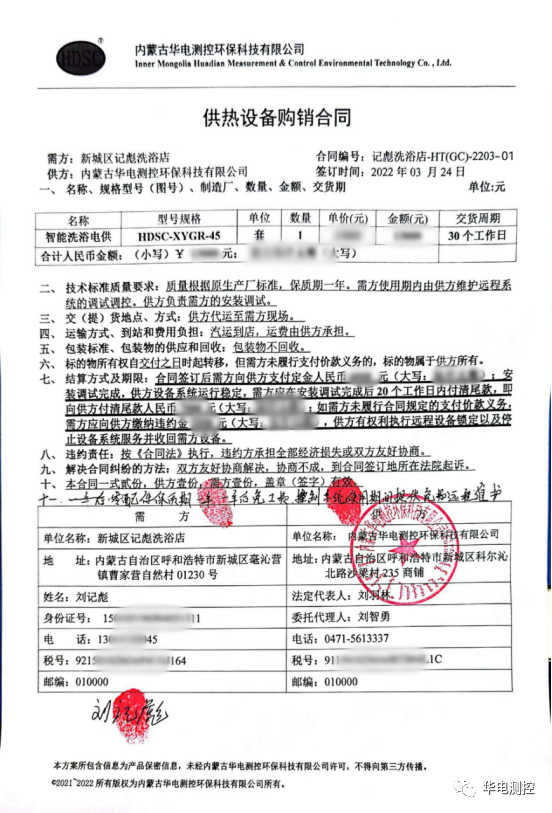 2022年3月24日,內(nèi)蒙古華電測控環(huán)??萍加邢薰九c呼和浩特市某洗浴店成功簽約智能洗浴電供熱系統(tǒng)項(xiàng)目,這是繼上一次某洗浴中心供熱項(xiàng)目安裝完成后的又一喜訊!本次合同的簽訂,將進(jìn)一步凸顯公司自動化控制的優(yōu)勢,為內(nèi)蒙古公司在國內(nèi)市場加快推廣和開展多元化業(yè)務(wù)帶來了積極作用。
