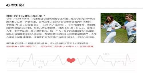 第四,關(guān)于心率與健康。心率,是指正常人每分鐘心跳的次數(shù),一般成人正常情況下為60~100次/分。心率也是十分重要,因?yàn)樾呐K就是人體的“發(fā)動(dòng)機(jī)”,心臟沒(méi)了心率,就是沒(méi)了心跳,人的生命也就終止了,而如果這臺(tái)“發(fā)動(dòng)機(jī)”不能穩(wěn)定工作,也就意味著人體不能正常工作,就會(huì)出現(xiàn)健康狀況。