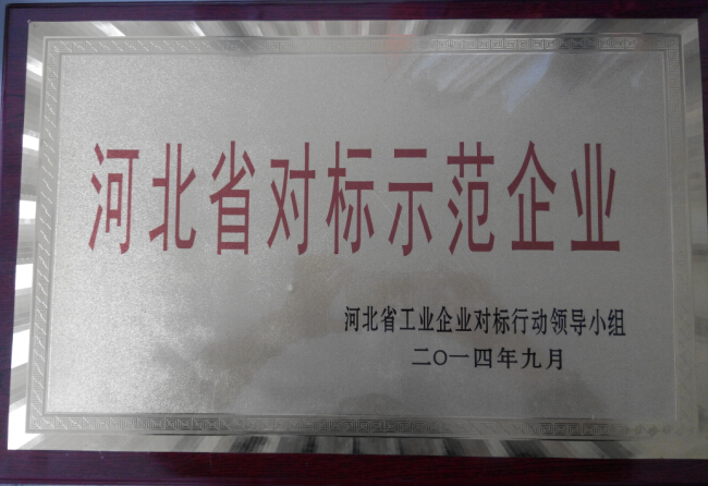 2014年9月,公司被河北省工業(yè)信息化廳工業(yè)企業(yè)對(duì)標(biāo)行動(dòng)領(lǐng)導(dǎo)小組認(rèn)定為第二批河北省對(duì)標(biāo)(技術(shù)創(chuàng)新類)示范企業(yè),并于近日頒發(fā)了榮譽(yù)證書和牌匾。