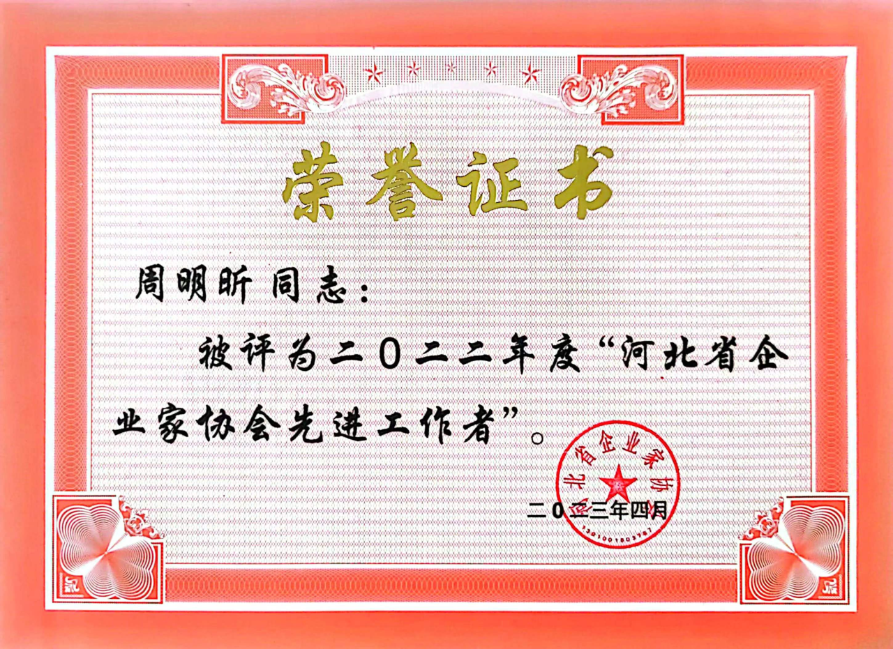 2023年4月,華電測(cè)控集團(tuán)副總經(jīng)理周明昕同志被河北省企業(yè)家協(xié)會(huì)評(píng)為2022年度“河北省企業(yè)家協(xié)會(huì)先進(jìn)工作者”,這是繼榮獲河北省五一勞動(dòng)獎(jiǎng)?wù)?、河北省科技型中小企業(yè)創(chuàng)新英才后的又一省級(jí)榮譽(yù)。