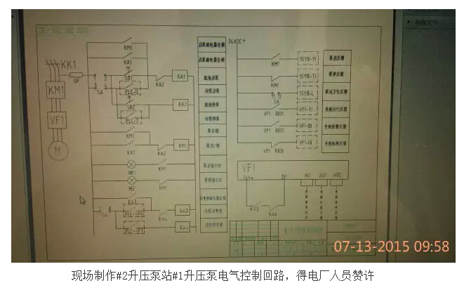 同時在同一地點的另一施工現(xiàn)場,在公司總工程師、工程部經(jīng)理姜崇明領(lǐng)導(dǎo)下,水廠的無人化值守程控部分改造緊鑼密鼓的推進(jìn)。#2升壓泵站的變頻自動供水、節(jié)水泵站遠(yuǎn)程自動控制、二級泵站供水閥自動、全廠排污坑自動排水、取水泵站取水泵和液控閥聯(lián)動自動供水、全廠視頻監(jiān)控系統(tǒng)等等,一個又一個的技術(shù)難點被攻克,一個又一個的系統(tǒng)被優(yōu)化,得到的是客戶滿意的微笑,收獲得是公司員工的成長。