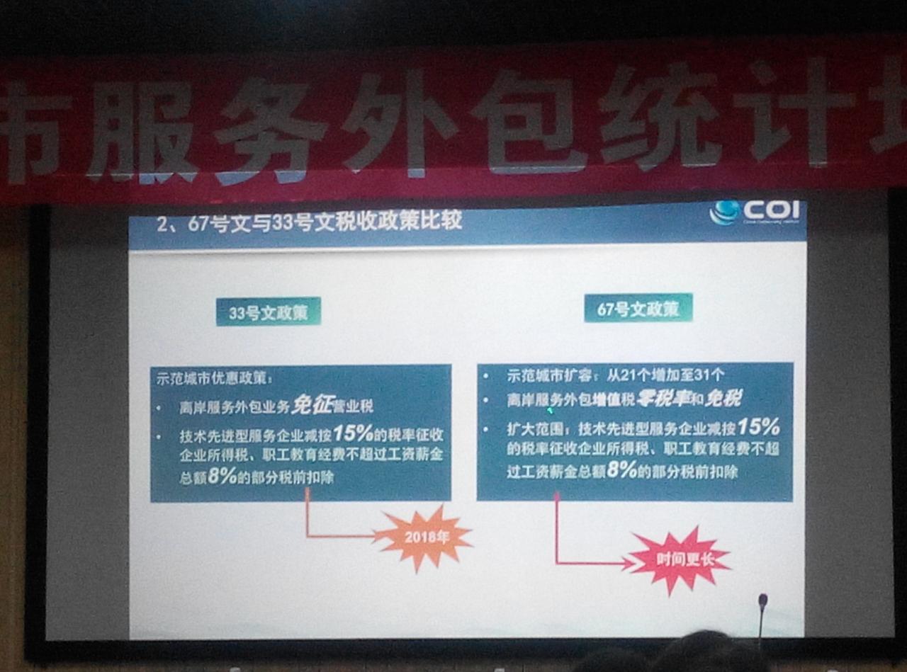 通過本次培訓(xùn)清晰了什么是服務(wù)外包;服務(wù)外包的分類:2014年現(xiàn)行統(tǒng)計標(biāo)準(zhǔn)分為三個門類(ITO信息技術(shù)外包、BPO業(yè)務(wù)流程外包、KPO知識流程外包),九個大類(軟件研發(fā)外包、信息技術(shù)服務(wù)外包、運營和維護服務(wù)、內(nèi)部管理外包服務(wù)、業(yè)務(wù)運營外包服務(wù)、供應(yīng)鏈外包服務(wù)、商務(wù)服務(wù)外包、技術(shù)服務(wù)外包、研發(fā)服務(wù)外包),35個中類;服務(wù)外包與服務(wù)貿(mào)易之間的關(guān)系等。服務(wù)外包產(chǎn)業(yè)的發(fā)展在國家政策《國務(wù)院關(guān)于促進服務(wù)外包產(chǎn)業(yè)加快發(fā)展的意見》國發(fā)[2014]67號文件(離岸服務(wù)外包增值稅零稅率和免稅,擴大范圍:技術(shù)先進型服務(wù)企業(yè)減按15%的稅率征收企業(yè)所得稅,職工教育經(jīng)費不超過工資薪金總額8%的部分稅前扣除)的支持力度下,不斷成長提升。通過建立的有效溝通和營銷渠道,構(gòu)建交易平臺,積極走出去,尋求與國際接軌的走向國際的策略,借助云計算、大數(shù)據(jù)等新技術(shù)融合共同發(fā)展。最后,主辦方秦皇島市商務(wù)局代表做了總結(jié)發(fā)言,還為大家精心準(zhǔn)備了冷餐,就餐的同時大家相互交流,彼此相互了解。