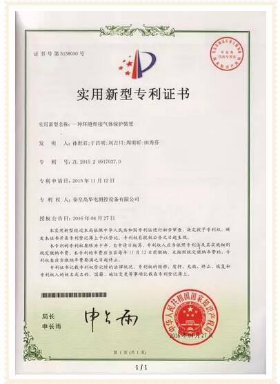 【企業(yè)要聞】公司申請的“一種環(huán)縫焊接氣體保護(hù)裝置”獲頒實(shí)用新型專利證書