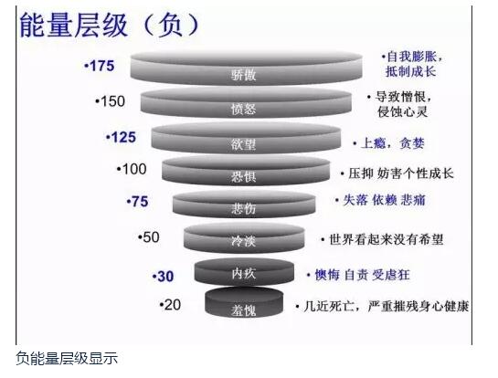 戴維.霍金斯發(fā)現(xiàn),凡是生病的人一般都用負(fù)面的意念,他們喜歡抱怨、指責(zé)、仇恨別人,不斷指責(zé)別人過程當(dāng)中就消減自己很大的能量。這些意念的振動頻率低于200。這些人容易得很多不同的疾病。