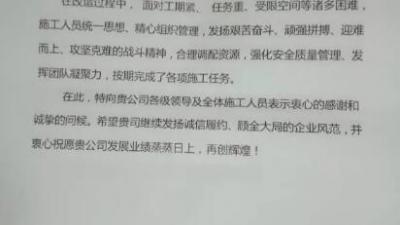 【企業(yè)要聞】以服務(wù)贏信譽(yù)――公司再次收到甲方表揚(yáng)信” 2018-05-28“以坦誠(chéng)交朋友,以創(chuàng)新謀發(fā)展,以質(zhì)量求生存,以服務(wù)贏信譽(yù),以改進(jìn)拓市場(chǎng)”――秦皇島華電測(cè)控設(shè)備有限公司20來年堅(jiān)持貫徹的經(jīng)營(yíng)方針。 公司每個(gè)員工牢記方針,始終秉持著“寧愿自己千辛萬苦,不讓客戶一時(shí)為難More