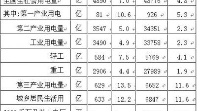 能源局公布3月份全社會用電量情況” 2017-04-174月14日,國家能源局發(fā)布3月份全社會用電量等數(shù)據(jù)。3月份,全社會用電量5139億千瓦時,同比增長7.9%。1-3月,全社會用電量累計14461億千瓦時,同比增長6.9%。分產(chǎn)業(yè)看,第一產(chǎn)業(yè)用電量203億千瓦時,同比增長10.1%;第二產(chǎn)業(yè)用電量999More